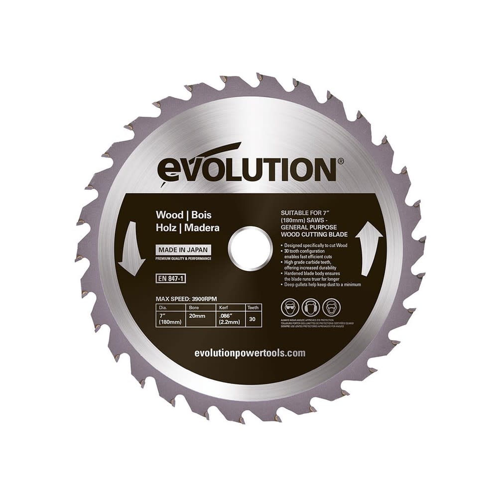 Evolution Power Tools 7″ x 30T Wood Cutting Circular Saw Blade