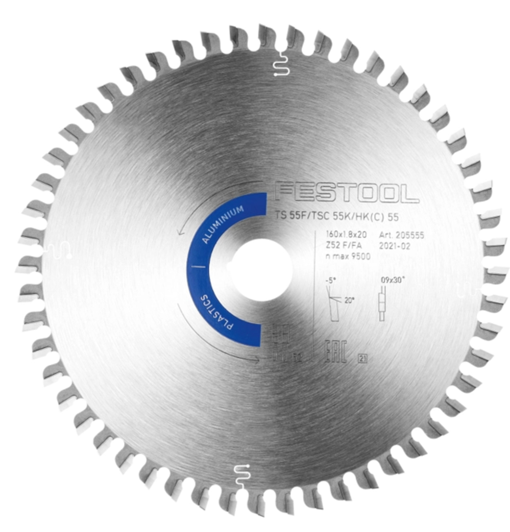 Festool Saw Blade Aluminum and Plastics 52 Tooth for TSC 55 K