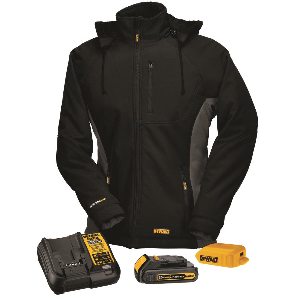 DEWALT Womens Heated Hooded Soft Shell Jacket Black S