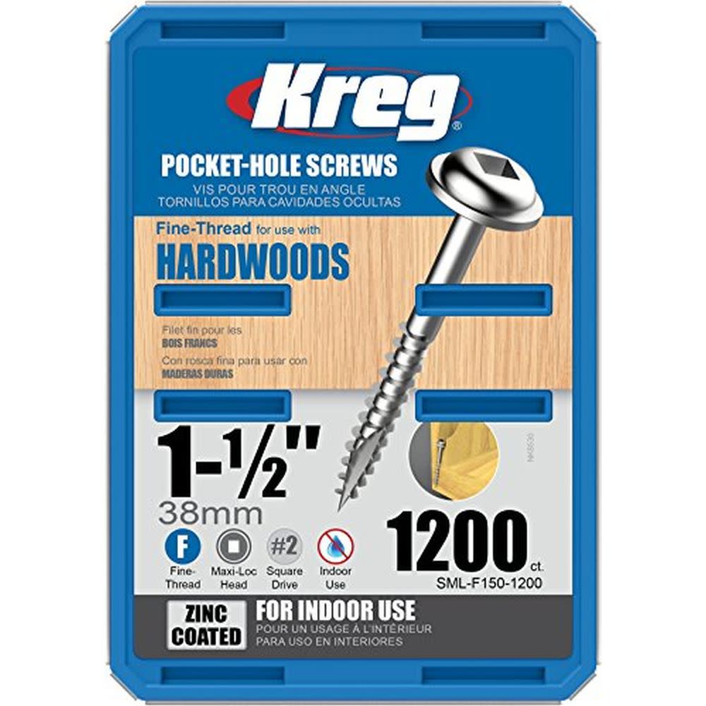 Kreg 1-1/2″ #7 Fine WH Zinc Pocket Screw – 1200ct